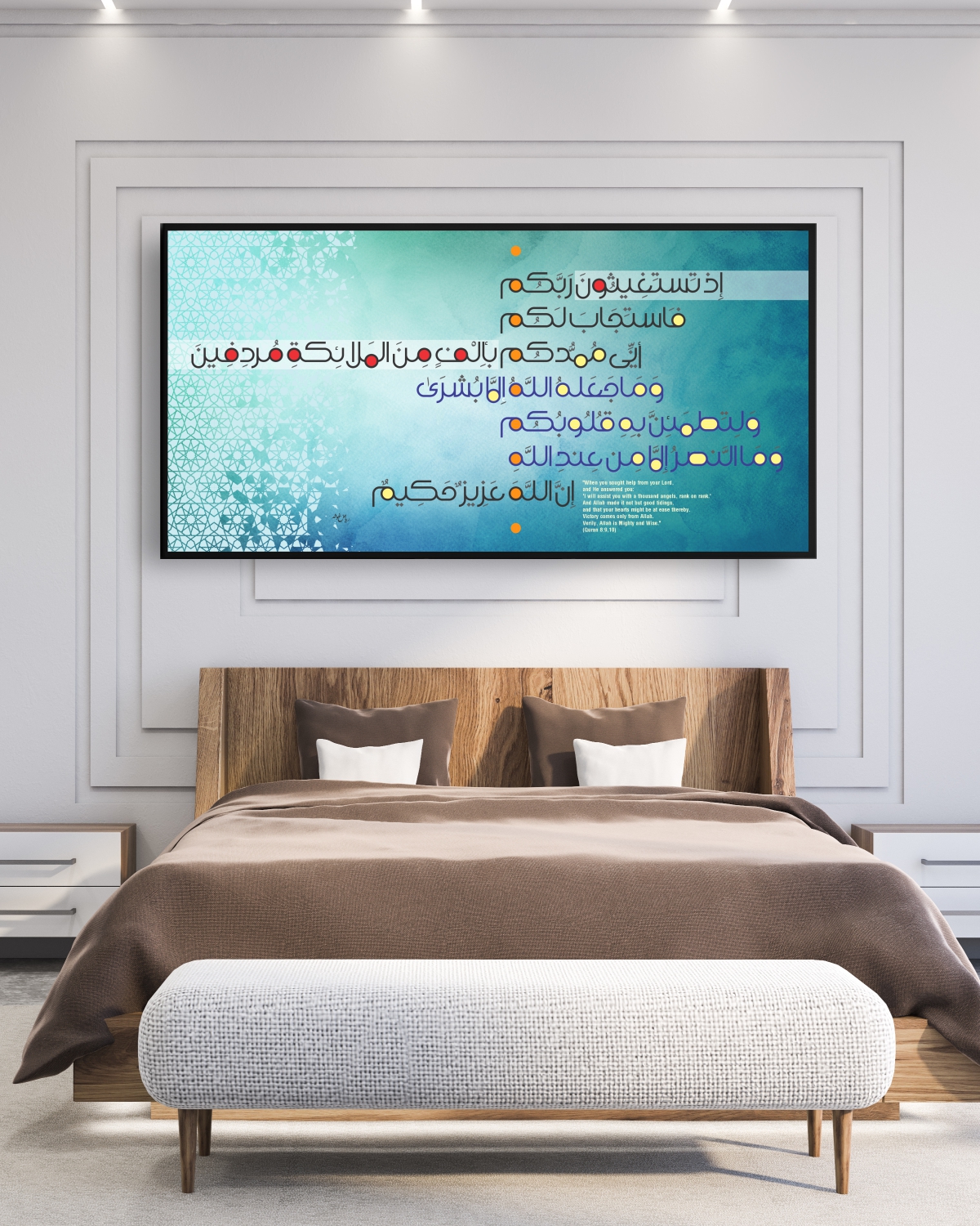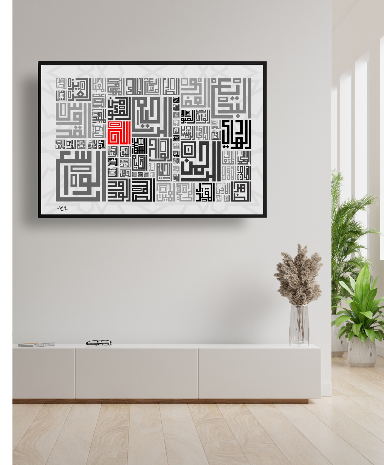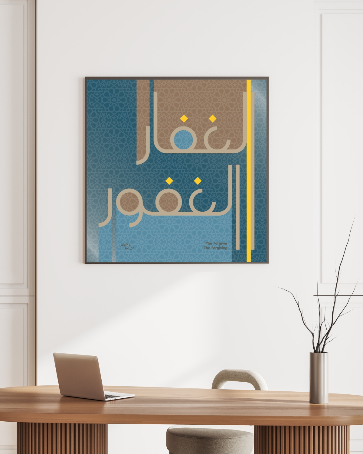 This digital art piece by Riyad Ghosheh, available at rbarts.us, beautifully blends modern Arabic calligraphy with Islamic art to showcase two of Allah’s compassionate names:Al-Ghaffar (The Forgiver) and Al-Ghafur (The Most Forgiving). The artwork is designed to evoke a sense of peace, reminding viewers that Allah forgives all mistakes and inspires hope in repentance and returning to Him. With its vibrant colors and contemporary design, this art appeals to a younger audience while carrying a profound spiritual message. It makes for a t....