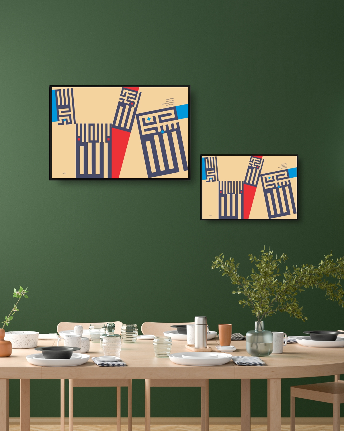This digital art piece by Riyad Ghosheh, available at rbarts.us, combines Arabic modern calligraphy with Islamic art, centered on the powerful practice of