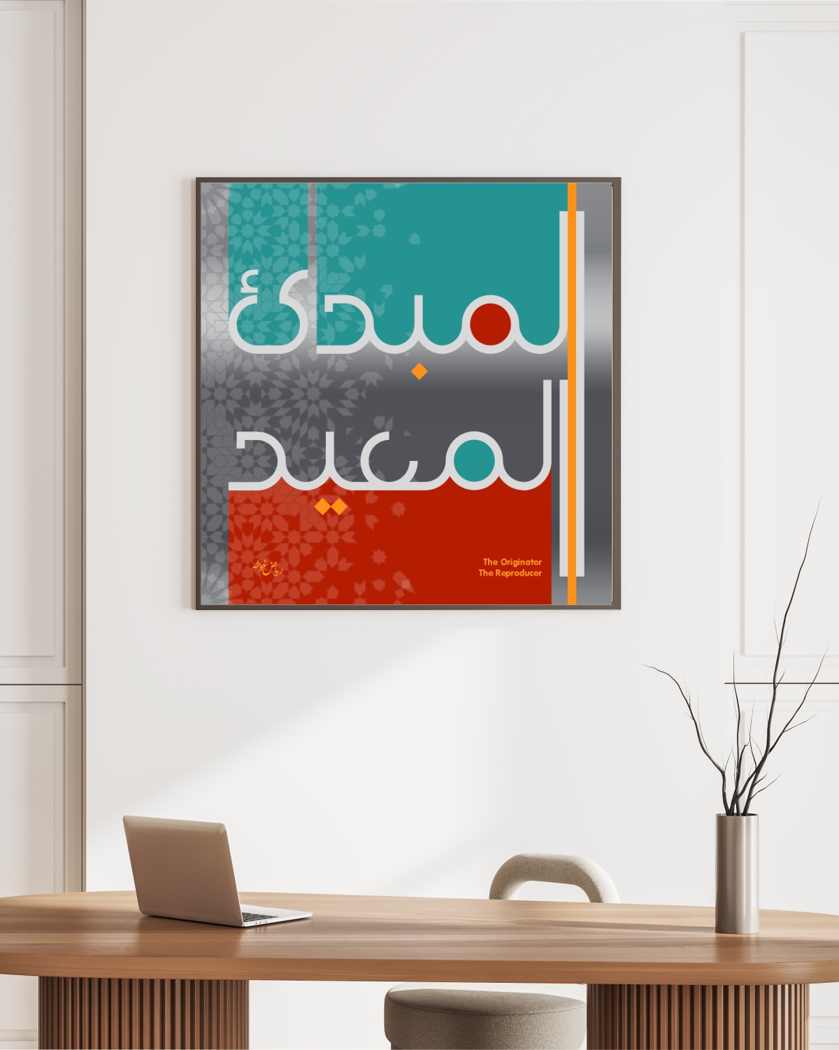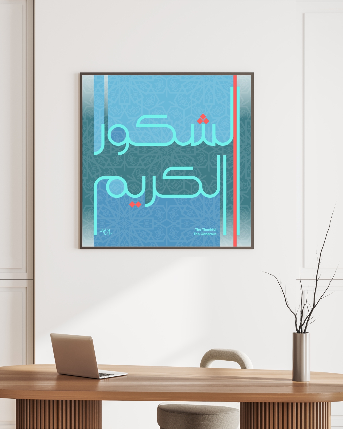 This stunning digital art piece by Riyad Ghosheh, available at rbarts.us, beautifully merges Arabic modern calligraphy with Islamic art, capturing the essence of faith, divine support, and spiritual strength. The artwork features a powerful Quranic verse from Surah Mohammad: