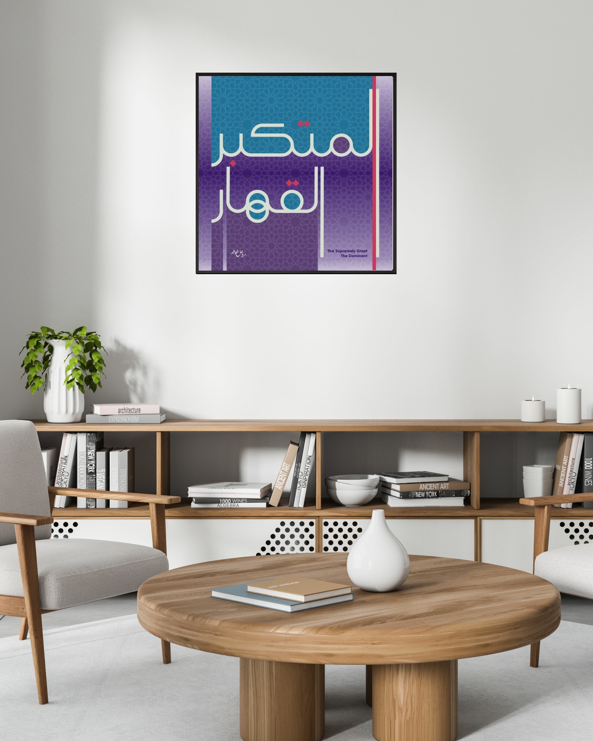 Discover a stunning digital art piece by Riyad Ghosheh, available exclusively at rbarts.us. This artwork beautifully merges Arabic modern calligraphy with Islamic art, featuring the powerful names of Allah: Al-Mutakabbir (The Supremely Great) and Al-Qahhar (The Dominant).