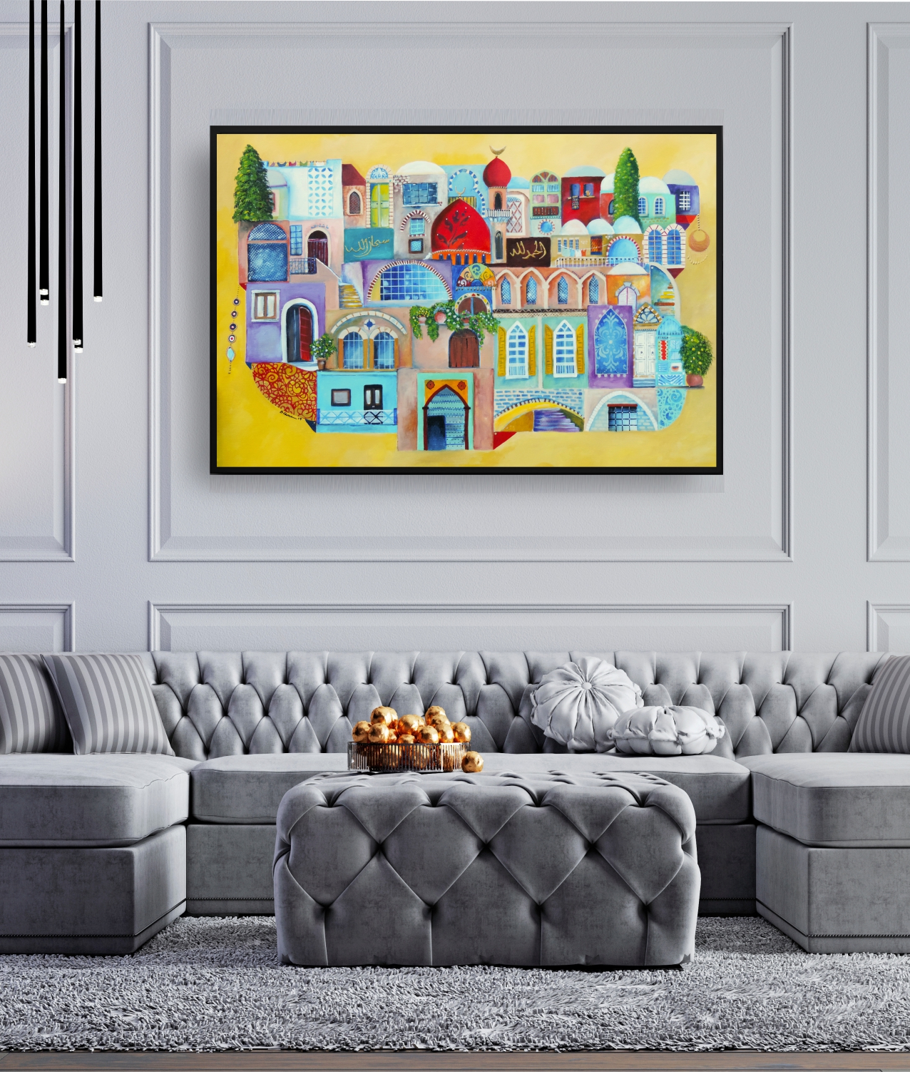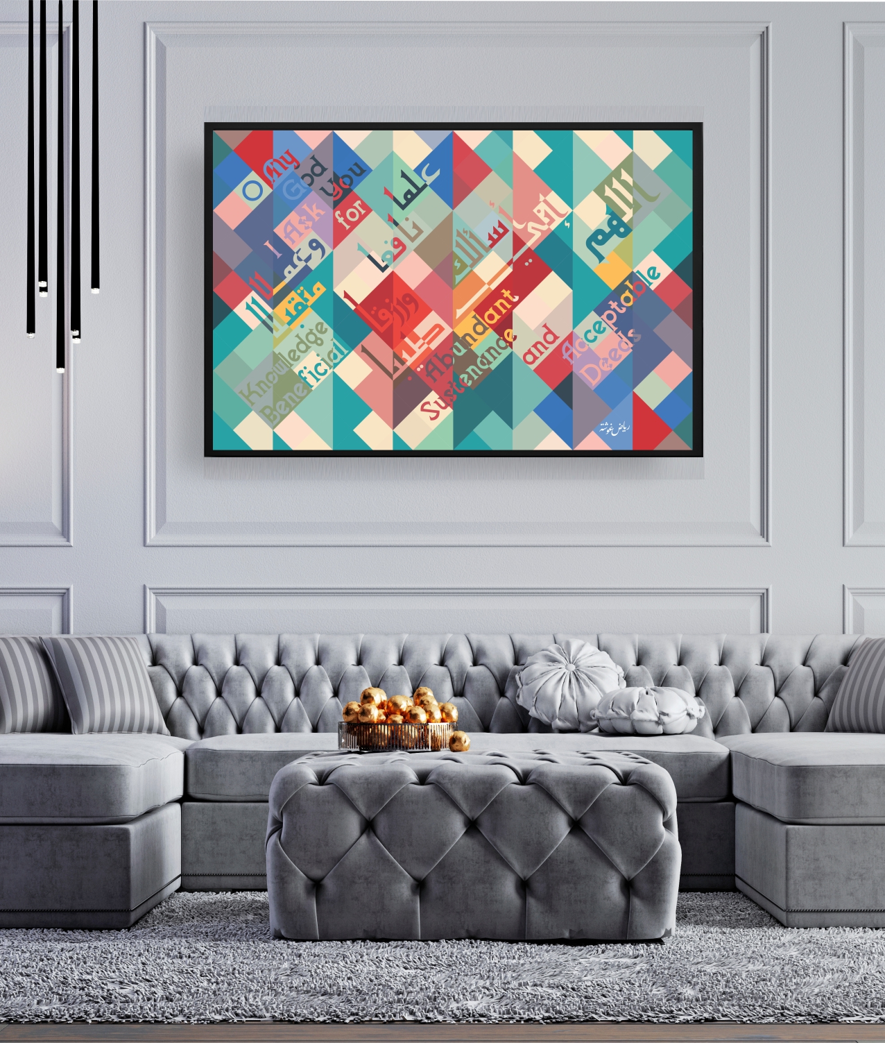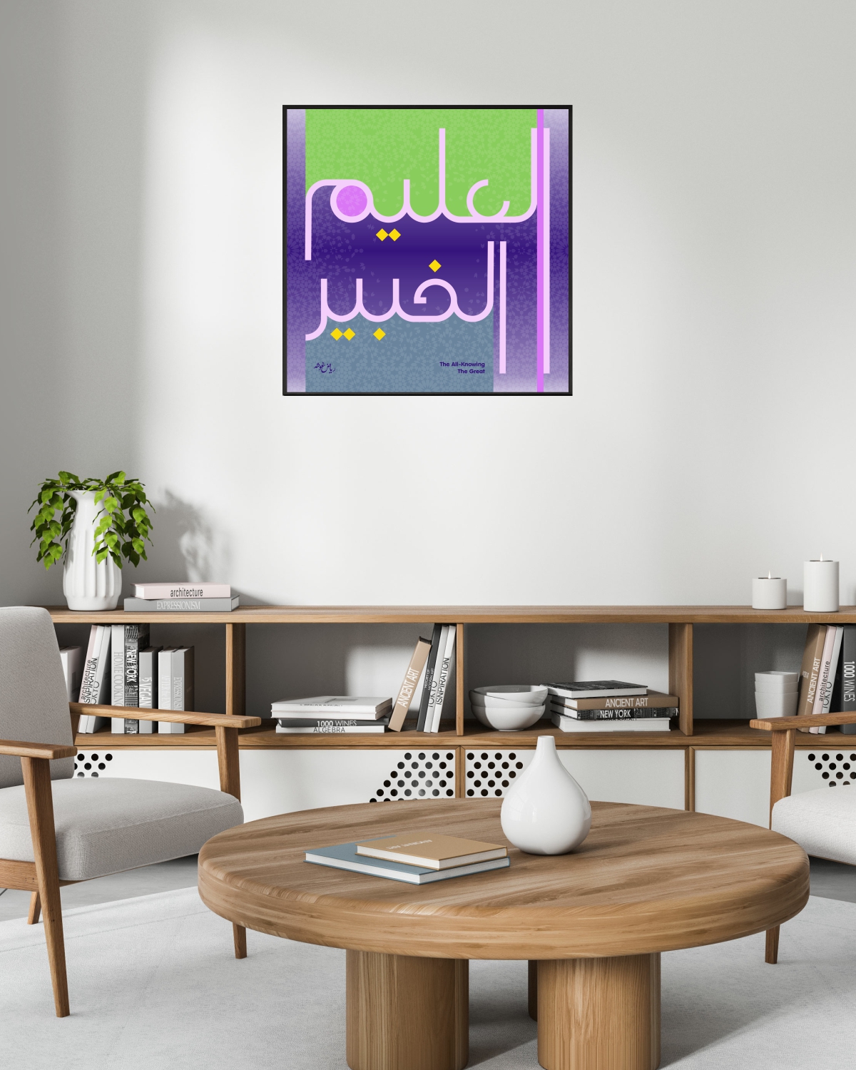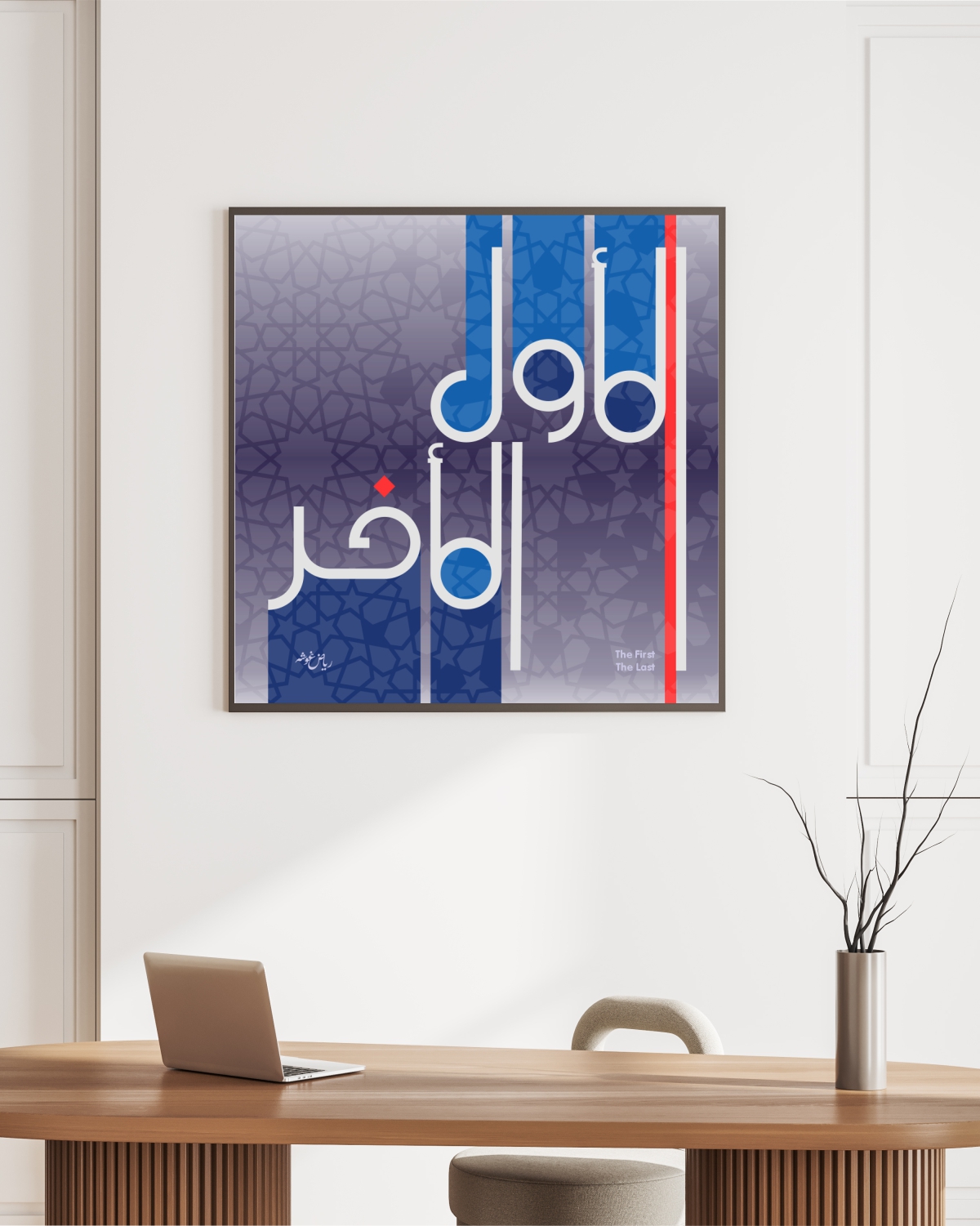 Discover a breathtaking digital art piece by Riyad Ghosheh, available at rbarts.us, featuring a harmonious fusion of Arabic modern calligraphy and Islamic art. This artwork showcases two of Allah’s profound names—Al Awwal (The First) and Al Akhir (The Last)—symbolizing His eternal presence and control overtime and space. Designed to evoke feelings of respect,calm, and rest, this piece serves as a visual reminder that everything is connected to God, instilling a sense ofstabilityandtrustin His ever-present nature.With vibrant colors....
